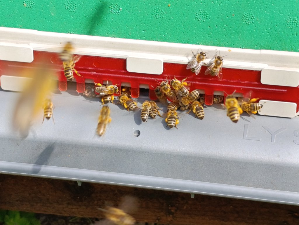 Dzisiaj skontrolowano 11 rodzin pszczelich, zamykając tym samym rundę wiosennych przeglądów we wszystkich 34 ulach pasieki Prełuki. Pszczoły wyraźnie bardziej ruchliwe niż dzień wcześniej – wzmożony oblot był widoczny już przy wejściu na pasiekę.