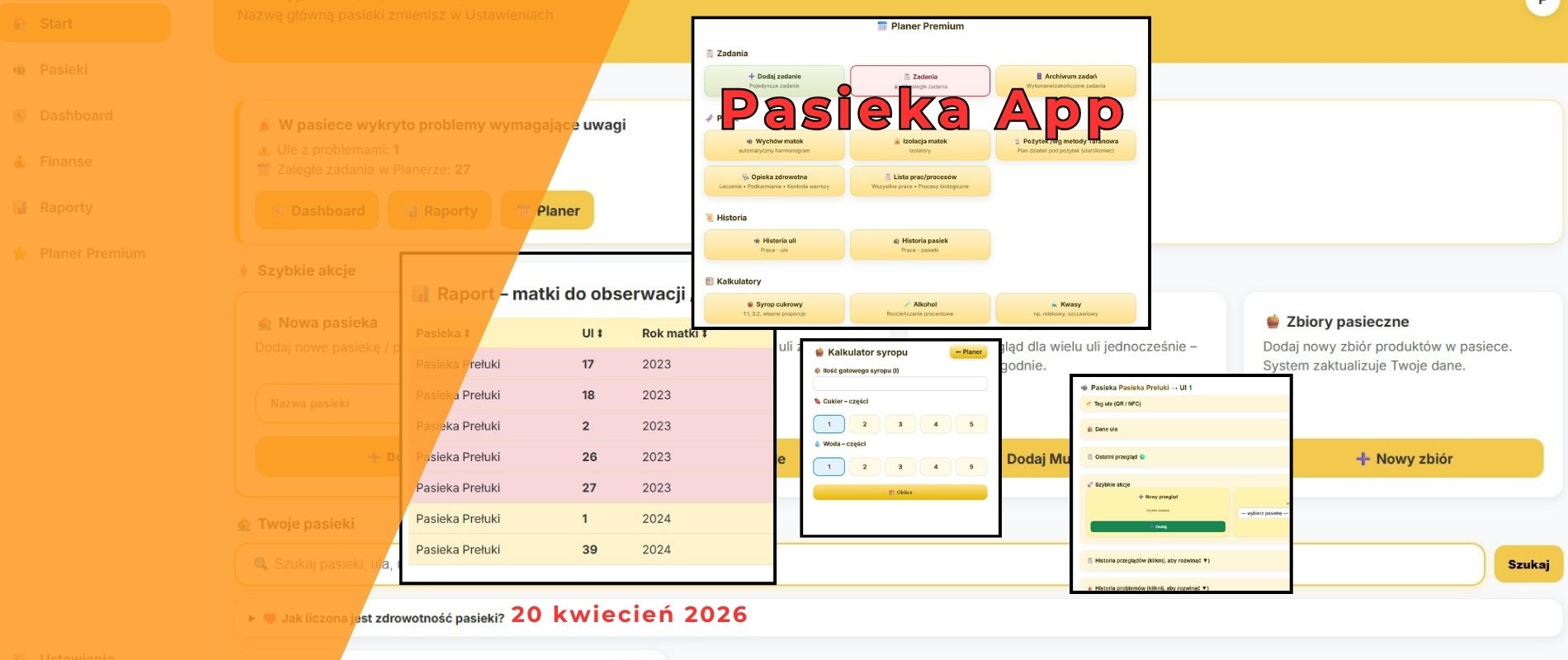 Sezon 2026 w pasiece Prełuki przebiega nieco inaczej niż poprzednie – po raz pierwszy zeszyt papierowy i luźne notatki trafiły do szuflady na dobre. W tym roku prowadzę wszystkie 34 rodziny pszczele wyłącznie przez aplikację Pasieka App i po kilku miesiącach codziennego użytkowania nie wyobraża sobie powrotu do starych metod.